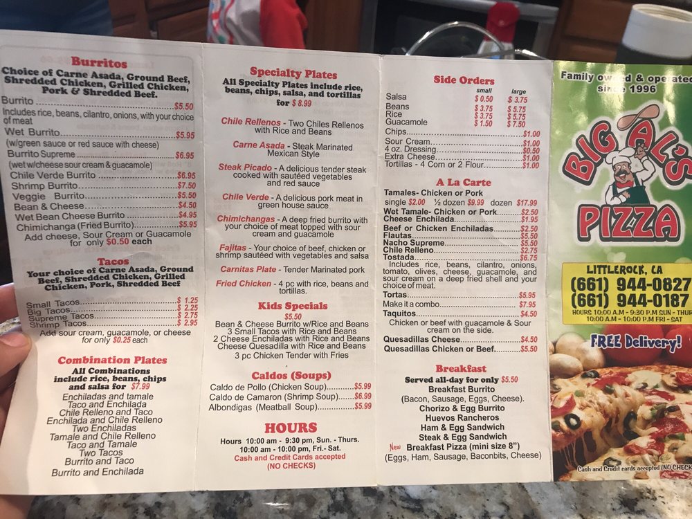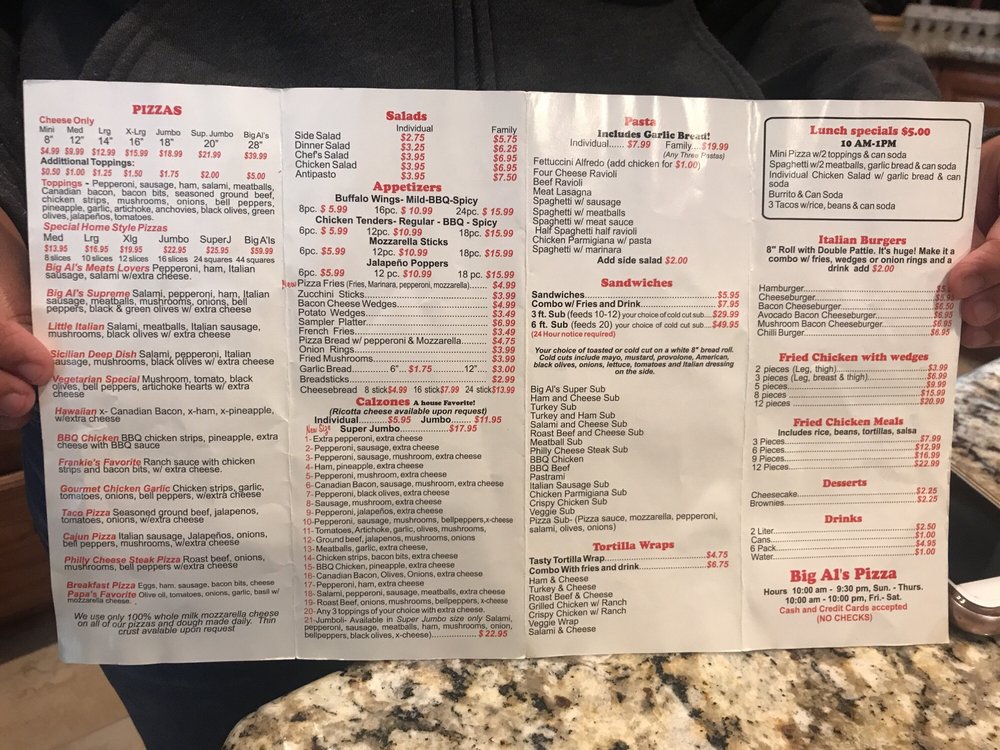Big Al's Pizza Menu